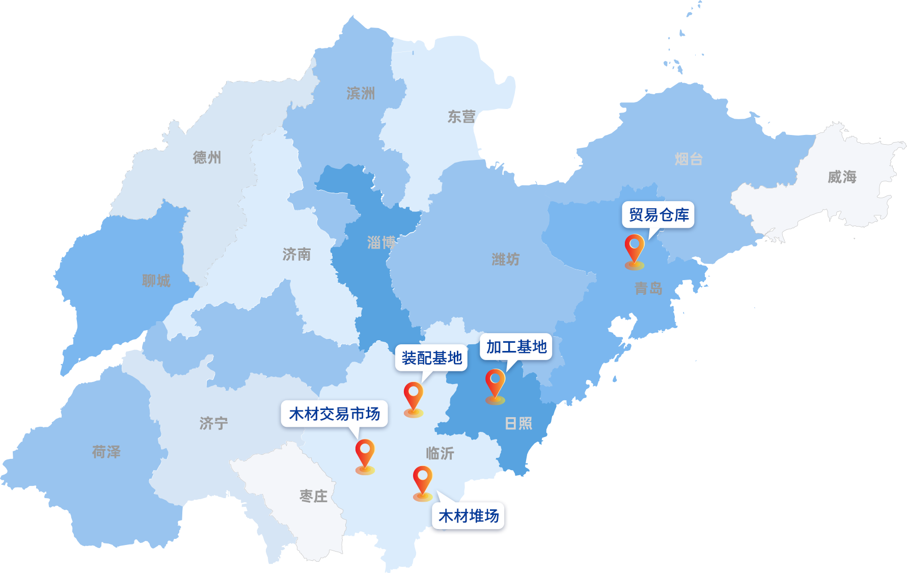坐拥日照港口交易资源,作为进口原木进入中国的“桥头堡”,也是进口原木多式联运的重要枢纽,成功打通了“港口入关→临沂初加工”的内通高速链路,形成港口(入关-交易-初加工)-内陆(深加工)的辐射网络,大幅降低客户的综合物流成本与时间成本,确保了原料供给的稳定与高效。